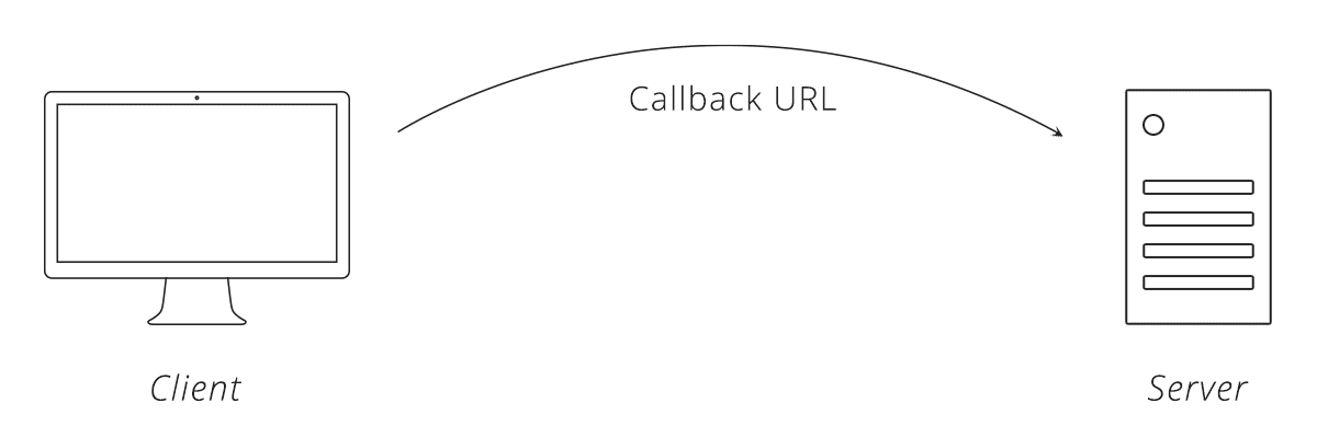 The client sends the user over to the server’s website, along with a URL that the server will send the user back to once the user authenticates, called thecallback URL.