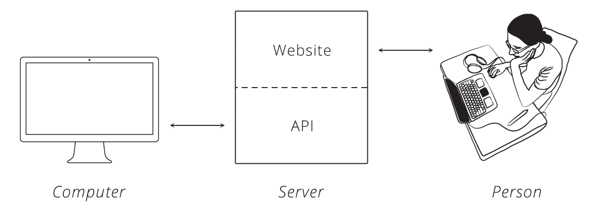 An API is the tool that makes a website’s data digestible for a computer. Through it, a computer can view and edit data, just like a person can by loading pages and submitting forms.