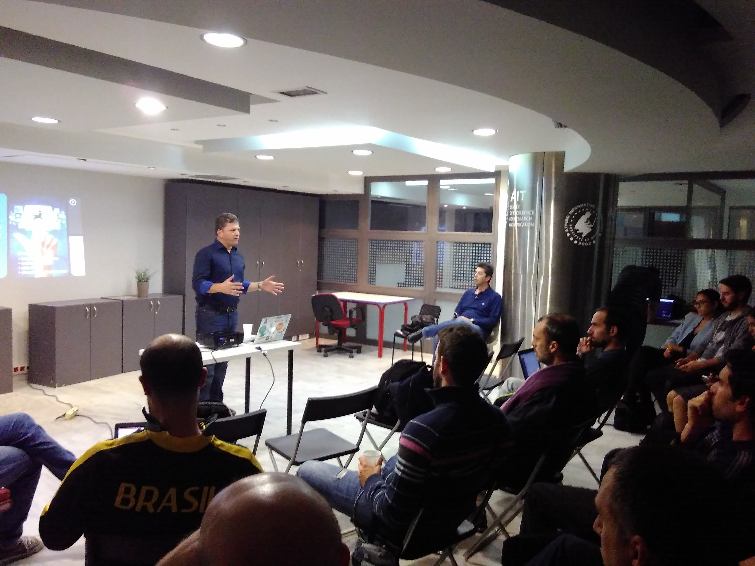 The meetup was a success, as the room was full of people! We even had people standing, just waiting to listen Sotiris discussing about Internet of Things applications, business models and relevant API technologies.